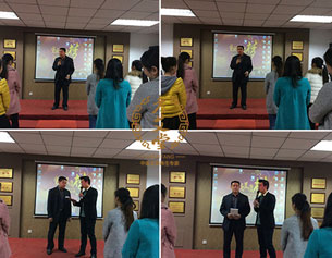 在老艾堂总部充满朝气和活力的晨会上,宁夏黑院长发表真挚的加盟感言:感受到公司的氛围,感受到公司员工发自内心的纯真笑容,感谢懂得并践行“孝、爱、恩、享”的公司总裁张总、感谢老艾堂商务经理翟经理、感谢中医讲师姜老师 讲解与操作,很荣幸能加盟老艾堂,相信在公司的大力支持和自身的不懈努力下,让老艾堂品牌在宁夏打响 枪!获得现场赞誉的掌声。